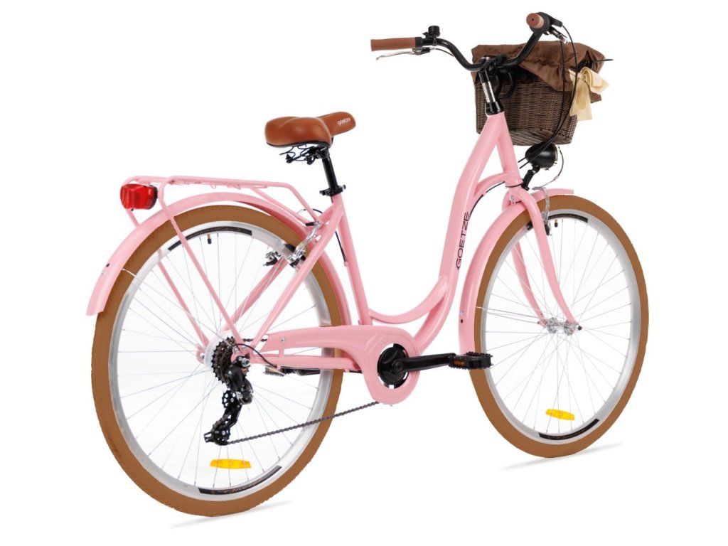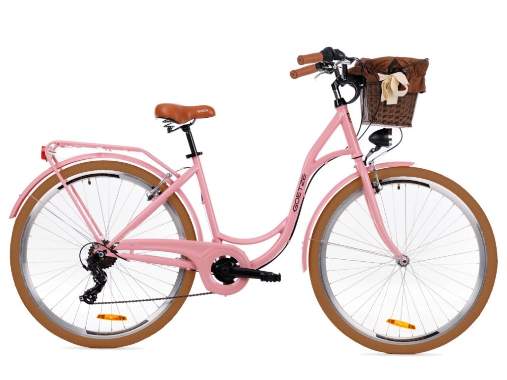 Retro Bicykel GOETZE MOOD 28" 7 prevodový ružový hnedé kolesá+košík grátis