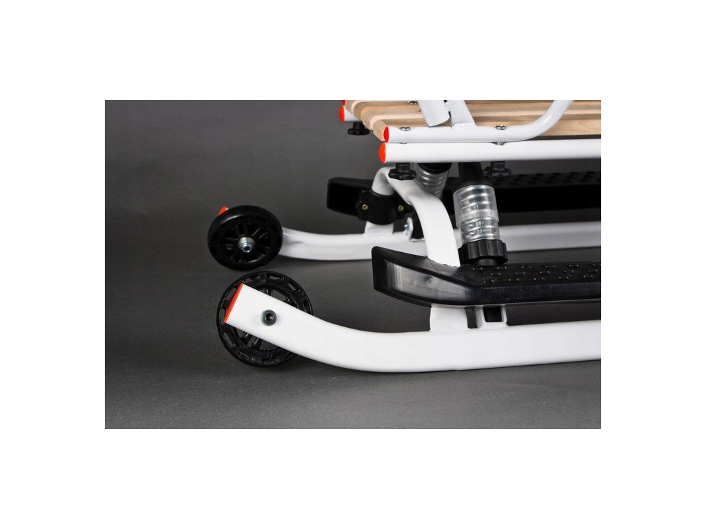 Oceľové sánky z kvalitnej nehrdzavejúcej ocele, pre pohodlné opretie je v zadnej časti opierka (dodávaná v demontovanom stave).Zima bez sánkovania nie je zima. Urobte Vaším deťom radosť v podobe sánok. Doprajte im teplo počas zimných radovánok, ktoré Vám zabezpečí náš fusak ,ktorý je súčasťou sánok. Novinkou na trhu je použitie tlmičov v saniach, ktoré spríjemňujú cestu najmladších.Okrem toho sú na zadnej strane vrecka a na prednej časti kabíny reflexné pruhy, ktoré zaisťujú bezpečnosť a viditeľnosť počas večerných prechádzok.