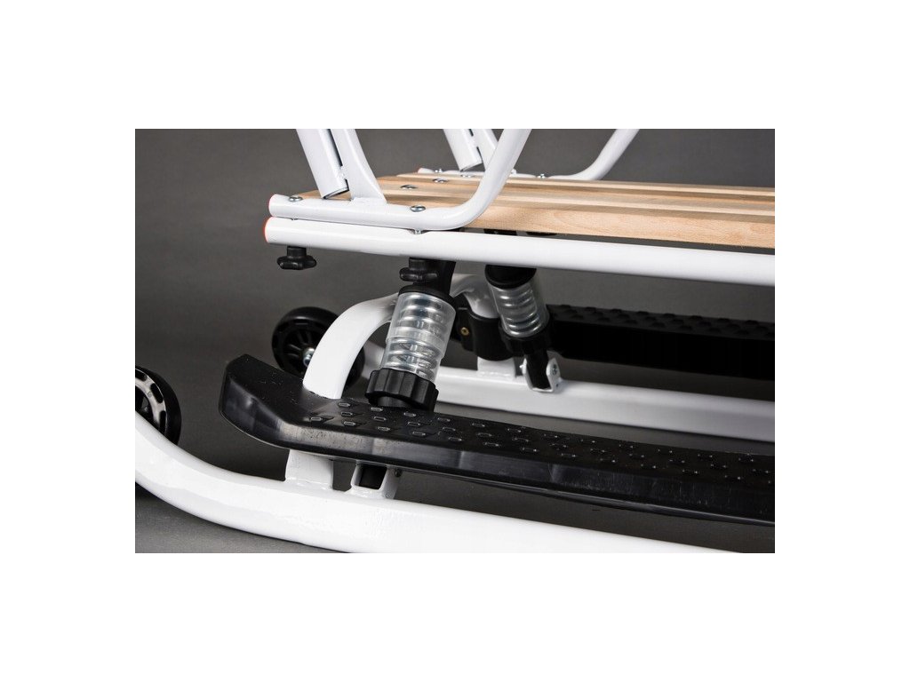 Oceľové sánky z kvalitnej nehrdzavejúcej ocele, pre pohodlné opretie je v zadnej časti opierka (dodávaná v demontovanom stave).Zima bez sánkovania nie je zima. Urobte Vaším deťom radosť v podobe sánok. Doprajte im teplo počas zimných radovánok, ktoré Vám zabezpečí náš fusak ,ktorý je súčasťou sánok. Novinkou na trhu je použitie tlmičov v saniach, ktoré spríjemňujú cestu najmladších.Okrem toho sú na zadnej strane vrecka a na prednej časti kabíny reflexné pruhy, ktoré zaisťujú bezpečnosť a viditeľnosť počas večerných prechádzok.