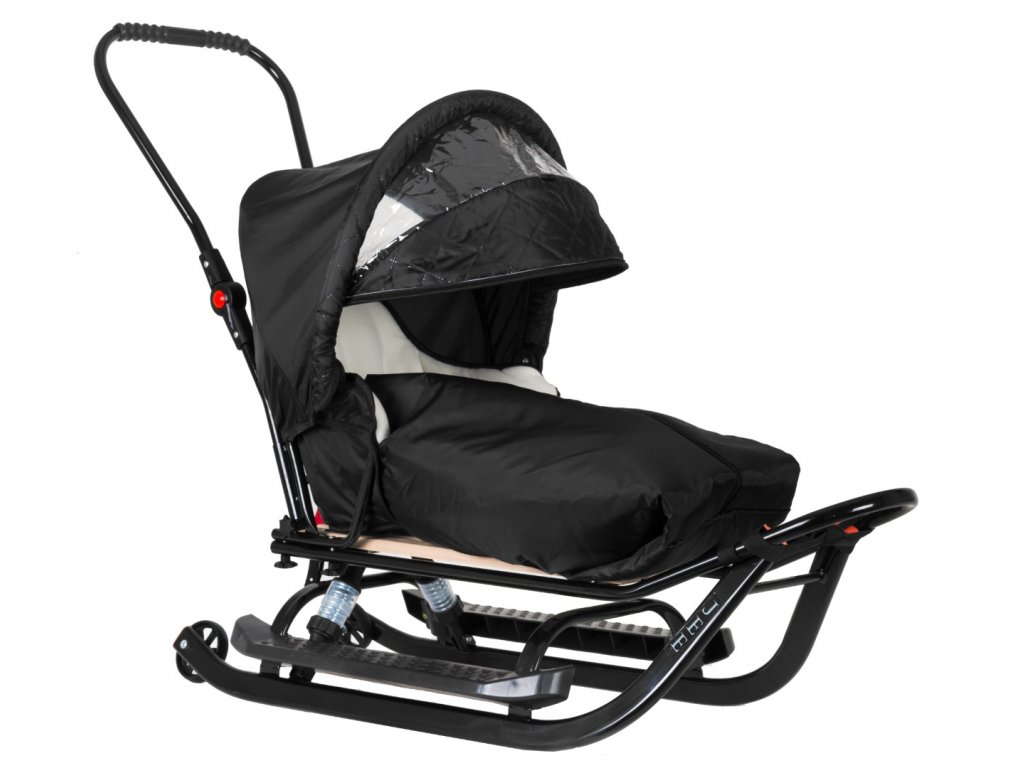 Detské sánky LUX odpružené s fusakom strieškou Čierno-krémové