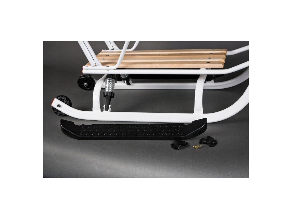 Oceľové sánky z kvalitnej nehrdzavejúcej ocele, pre pohodlné opretie je v zadnej časti opierka (dodávaná v demontovanom stave).Zima bez sánkovania nie je zima. Urobte Vaším deťom radosť v podobe sánok. Doprajte im teplo počas zimných radovánok, ktoré Vám zabezpečí náš fusak ,ktorý je súčasťou sánok. Novinkou na trhu je použitie tlmičov v saniach, ktoré spríjemňujú cestu najmladších.Okrem toho sú na zadnej strane vrecka a na prednej časti kabíny reflexné pruhy, ktoré zaisťujú bezpečnosť a viditeľnosť počas večerných prechádzok.