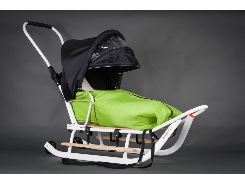 Detské sánky LUX s fusakom strieškou Bielo-zelené