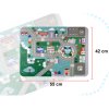 - ŠPECIFIKÁCIA – materiál: drevo, ostatné: MDF + podložka (kartón) + vedro (kartón + PP + PE) + taška (netkaná textília); počet blokov: 100; hádanky: 20; možnosť usporiadania budov: banka, škola, kaviareň, polícia, nemocnica, hasiči, čerpacia stanica, hotel, rozmery rohože: 55x42 cm; rozmery vedra: šírka/hĺbka 22x22,5 cm; hmotnosť: 1,375 kg; hmotnosť balíka: 1,769 kg.