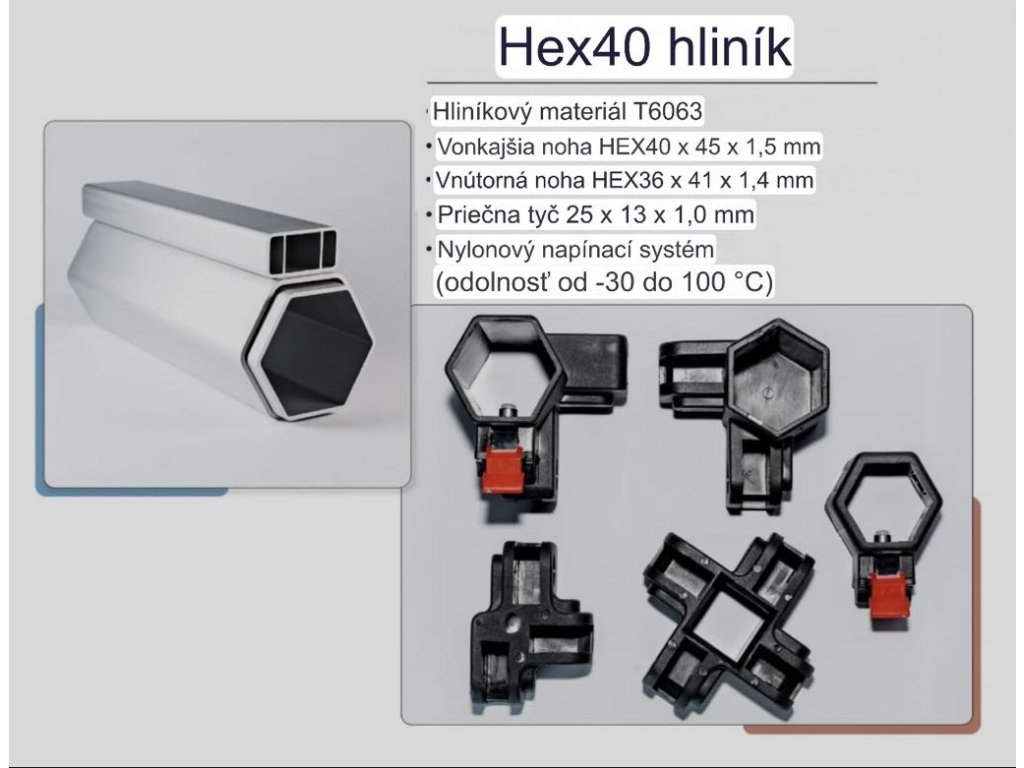 • Šesťuholníkové vonkajšie nohy: 40x45x1,5 mm